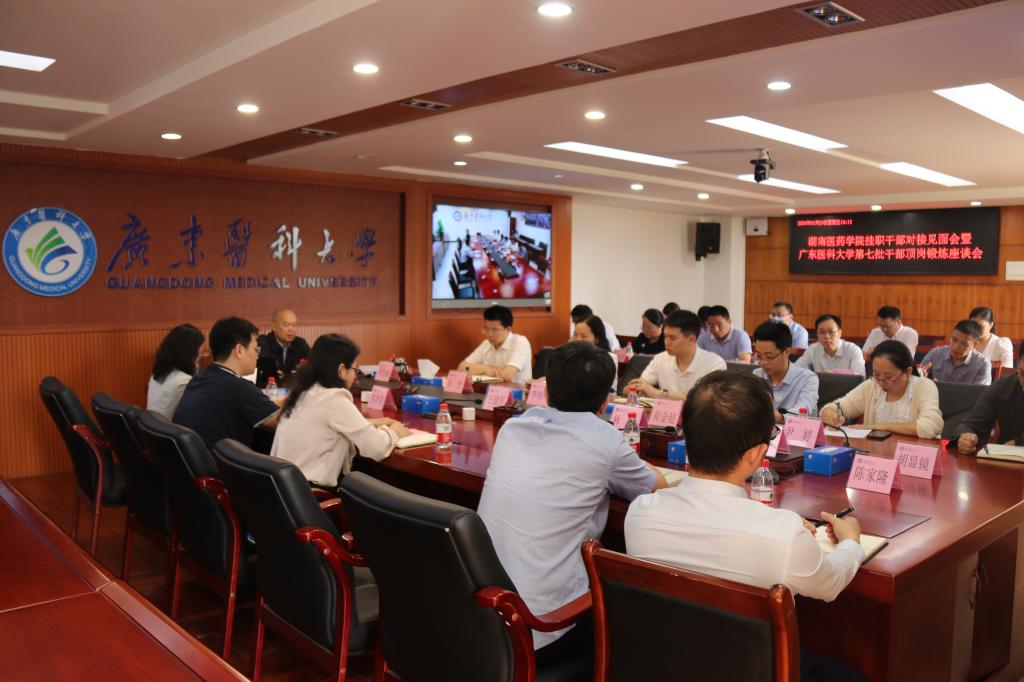 3月29日上午,学校在两校区第一会议室视频召开了湖南医药学院挂职干部对接见面会暨学校第七批干部顶岗锻炼座谈会。学校党委书记、校长卢景辉,党委常委、副校长曾志嵘,党委常委、组织统战部部长谭平、湖南医药学院挂职干部、相关职能部门负责人、顶岗锻炼接收与派出单位负责人、第七批顶岗锻炼全体干部、组织统战部全体干部参加了座谈会。会议由党委书记、校长卢景辉主持。