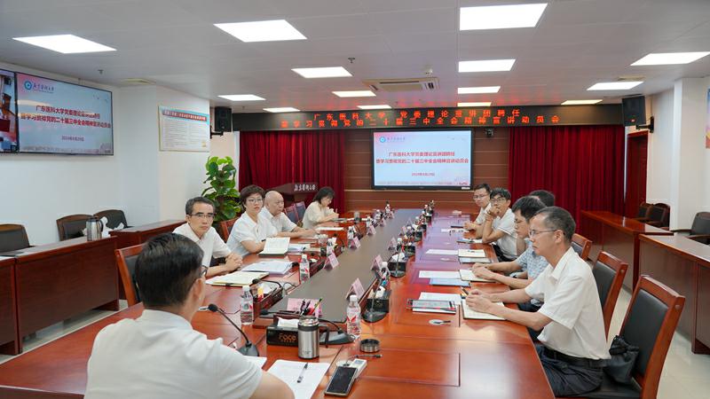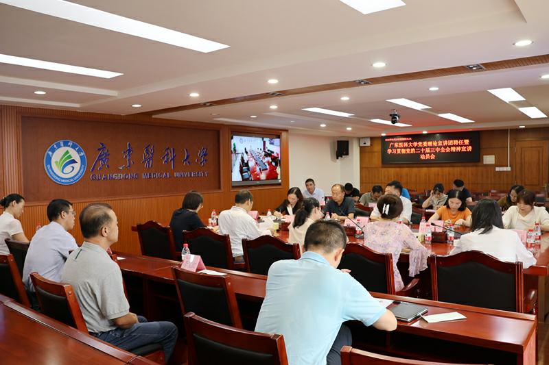 “在新学期第一天,学校一届十三次全委会召开前一天,举行党的二十届三中全会精神宣讲动员会,就是希望大家带着宣讲任务去参加全委会,能结合单位实际,去思考如何按照学校党委的谋划部署,去深入学习宣传贯彻党的二十届三中全会精神和推进下半年的重点工作。”党委副书记、党委理论宣讲团团长黄达海在动员讲话中指出。