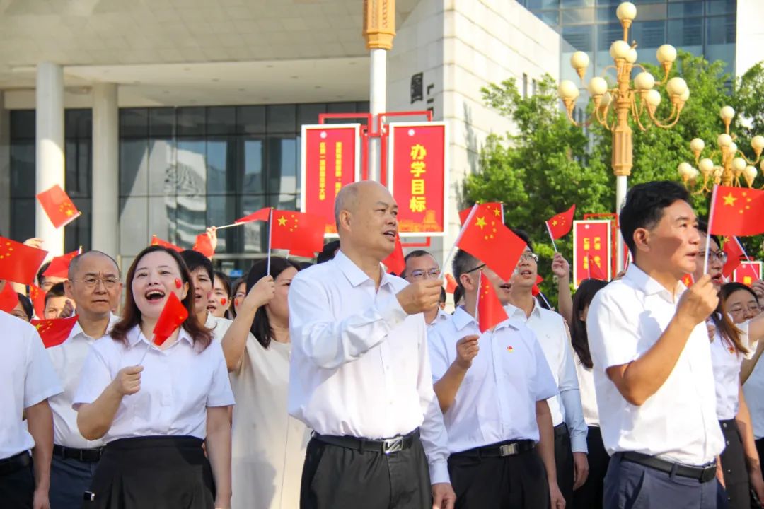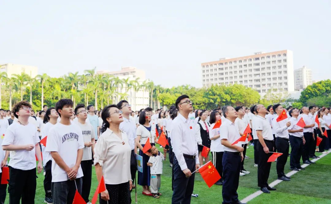 “五星红旗迎风飘扬,胜利歌声多么响亮,歌唱我们亲爱的祖国,从今走向繁荣富强!”师生们表达着对祖国母亲的热爱之情和对祖国未来的美好祝愿,共同祝福祖国繁荣昌盛、国泰民安,祝福学校蒸蒸日上、再谱华章。