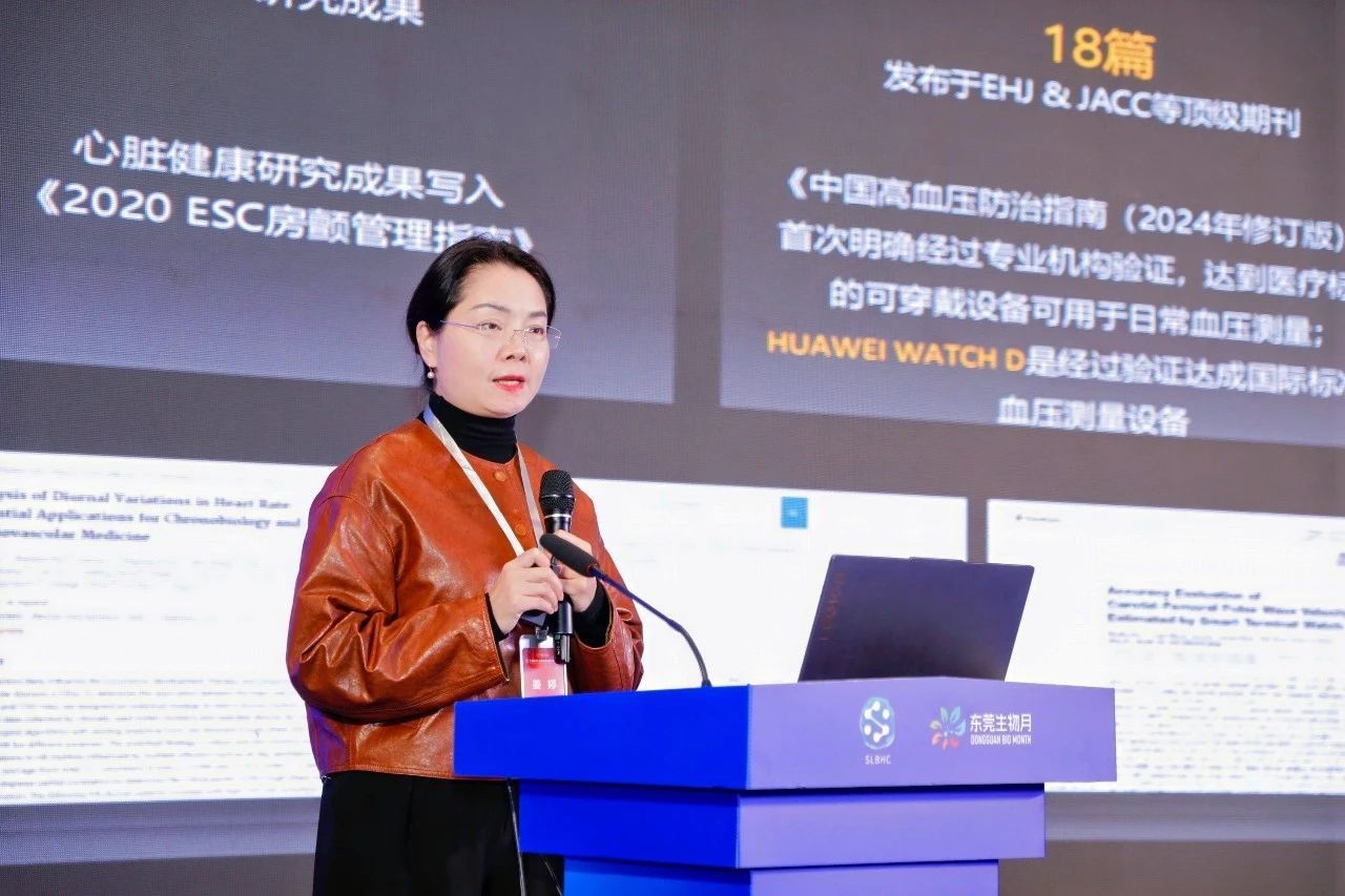 华为运动健康业务发展副总裁、华为运动健康产业首席专家姜婷带来《穿戴创新技术助力更健康生活》的分享。她指出,慢性病已成为全球公共卫生的重要挑战,而华为正通过穿戴创新技术为慢性病的预防、管理和康复提供全面解决方案。华为穿戴设备可实时监测血压、血糖、心电图等健康数据,结合远程监测、实时指导及个性化康复计划,为用户带来更加精准、便捷的健康管理体验。