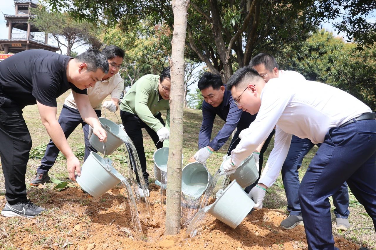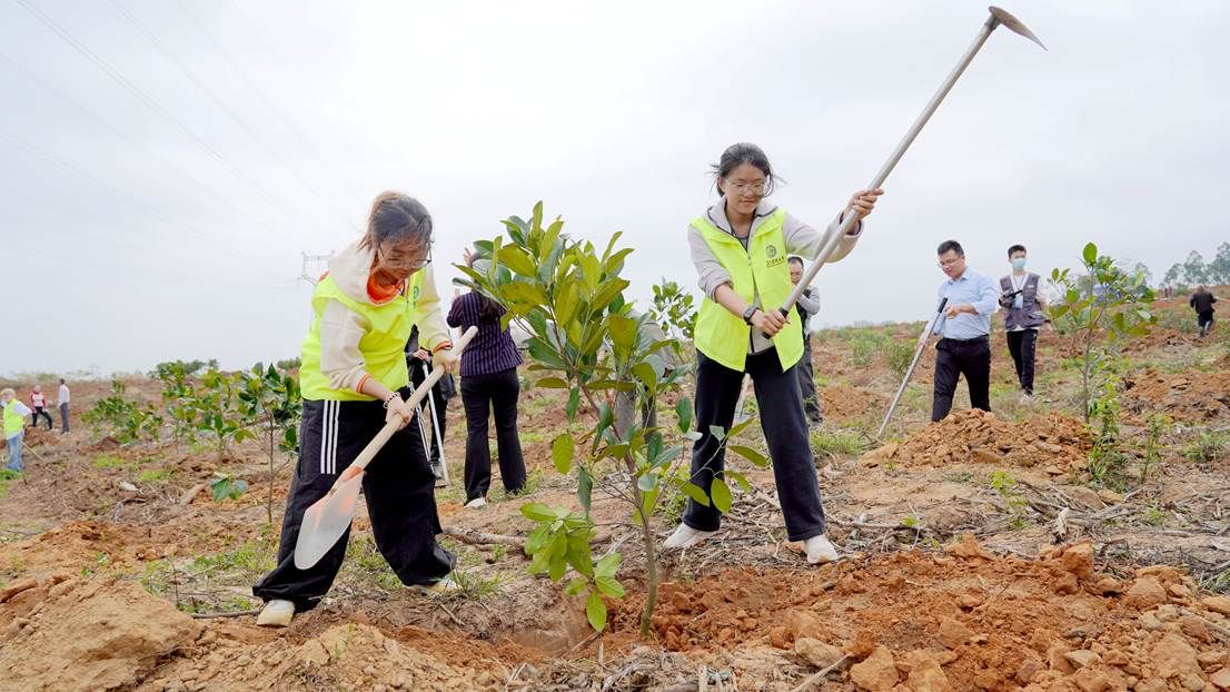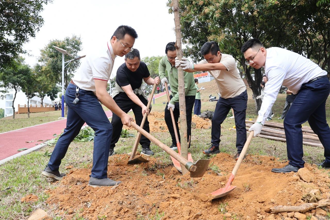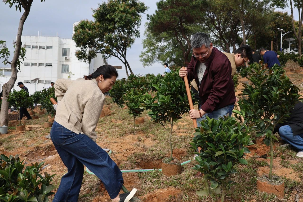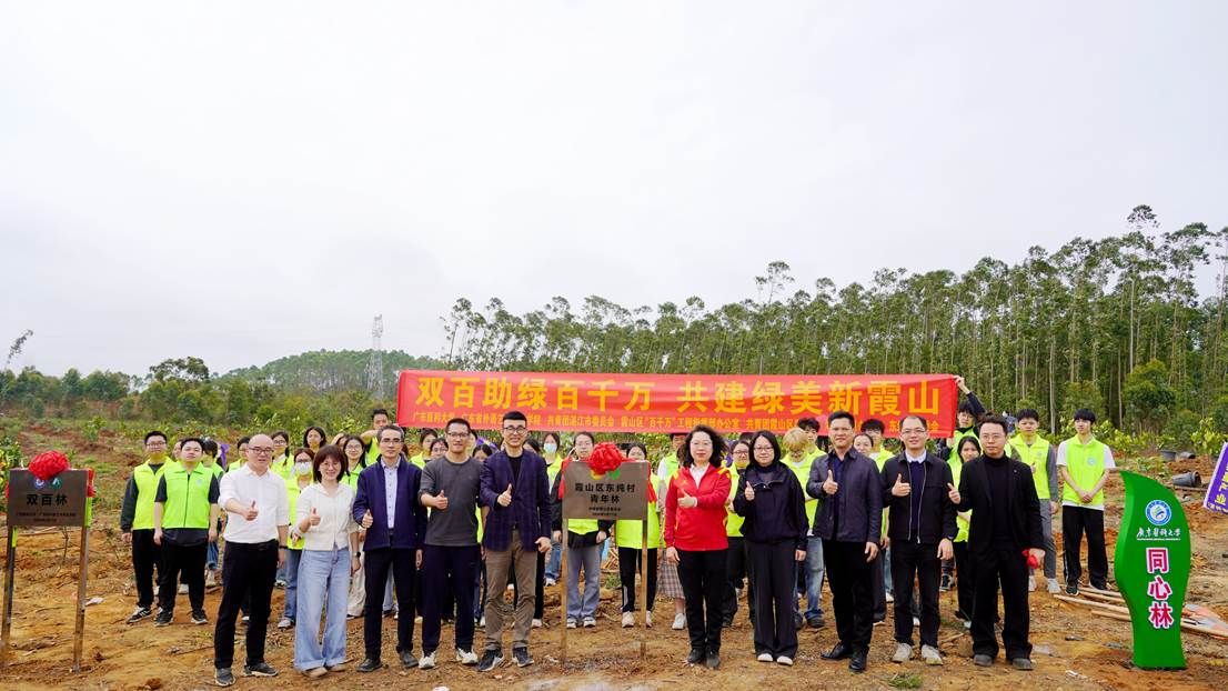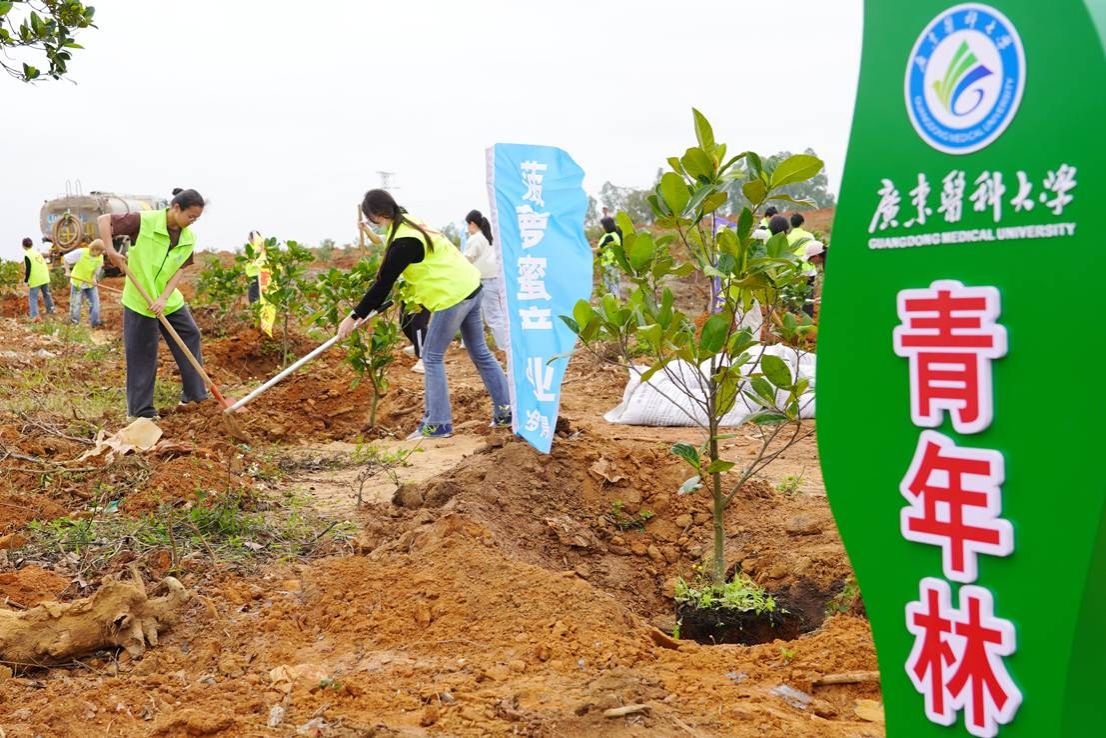 为深入贯彻落实省委、省政府关于“绿美广东”生态建设的部署要求,深化校地合作,3月11日,党委副书记黄达海带领干部师生一行,联合团湛江市委、遂溪县和霞山区在遂城街道、附城镇及霞山区海头街道举办2025年“医+双百行动”植树护绿主题活动,栽种苗木1000余棵,共同为“先锋林”“人才林”“巾帼林”“同心林”“青年林”五大主题林揭牌。活动以“双百行动”为主题,通过植树造林、健康义诊、环保服务等多元形式,助力乡村振兴与生态文明建设。