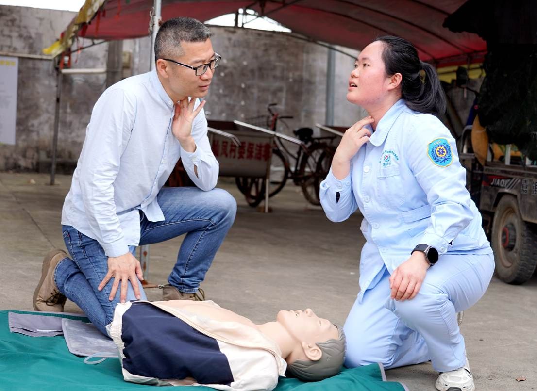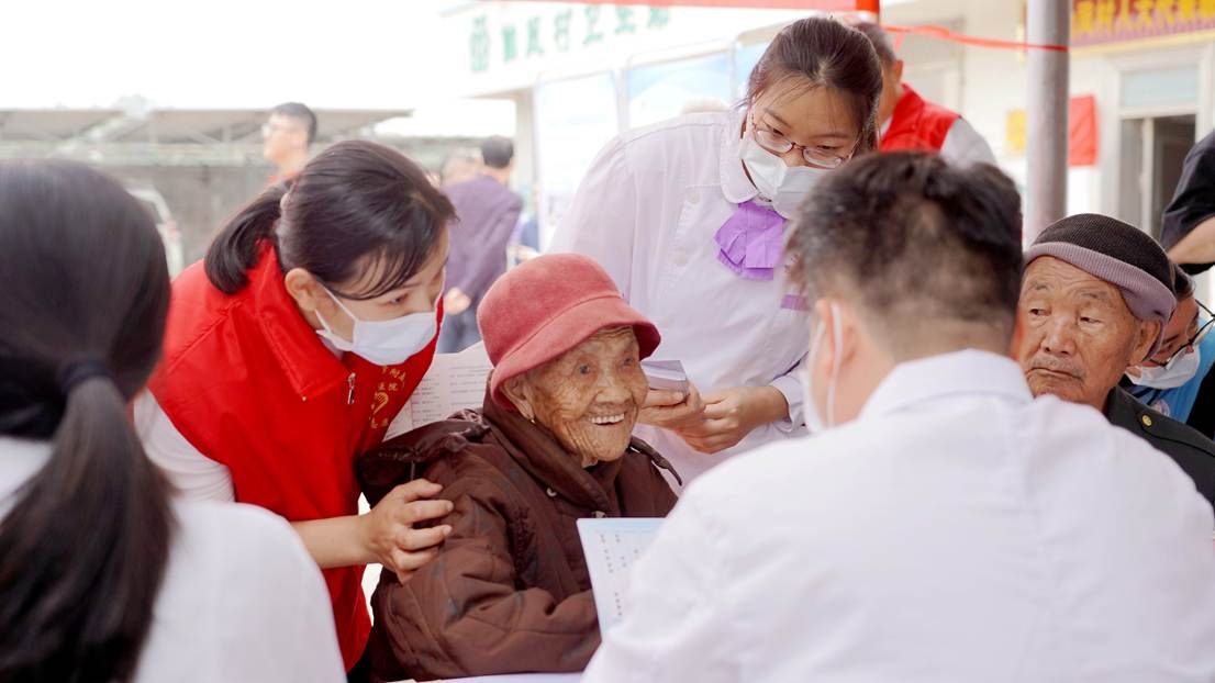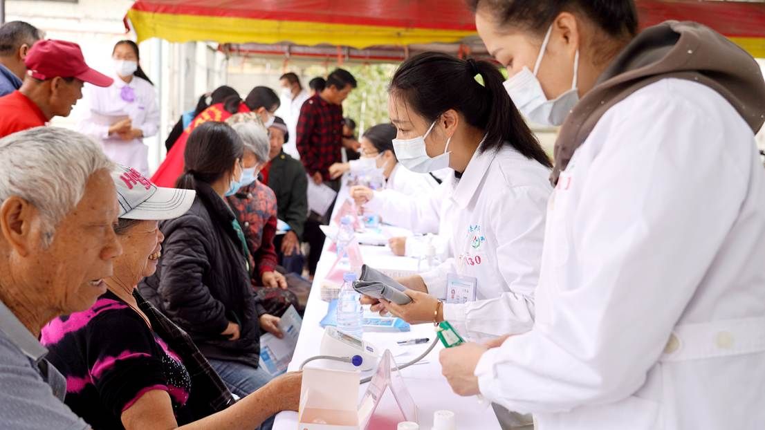 义诊台前,不少村民们有序排队等候,眉眼间透着期盼。其中还有两位是步行前来的百岁老人江阿婆和徐阿婆。志愿者细心扶着,医疗专家耐心问诊把脉,细致解答慢性病管理疑问,还贴心送上免费常备药品。
