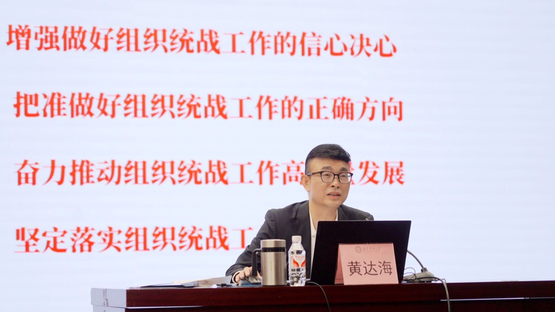黄达海指出,过去一年,全校组织统战系统坚持以习近平新时代中国特色社会主义思想为指导,牢牢把握新时代组织统战工作改革创新发展的要求,真抓实干、勇于担当,师生政治信仰更加坚定,党建质量对标提升,服务大局有力有效,干部队伍持续优化,人才工作取得突破,统战优势不断彰显,组织统战工作开创了新局面、取得了新成效。