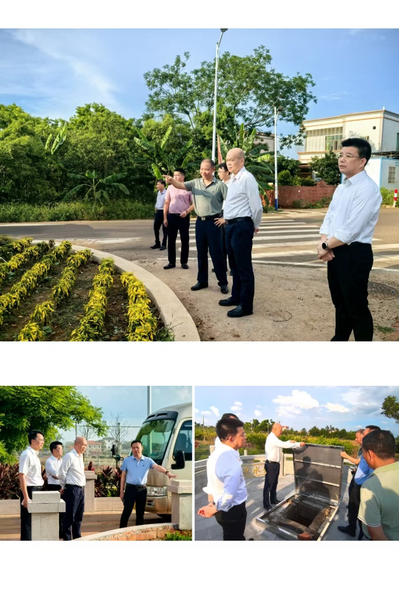随后,卢景辉一行前往西连镇罗宅村绿美生态小公园考察。西连镇党委书记梁汉飞介绍,该公园是西连镇美丽圩镇建设“七个一”工程中的绿美生态小公园。2024 年,通过“政府引导+央企助力+群众响应”多方合作机制,该公园顺利落成,为当地群众提供了一个集健身与休闲于一体的优质场所。漫步公园中,卢景辉一行切实感受到了乡村建设给群众生活带来的积极变化。