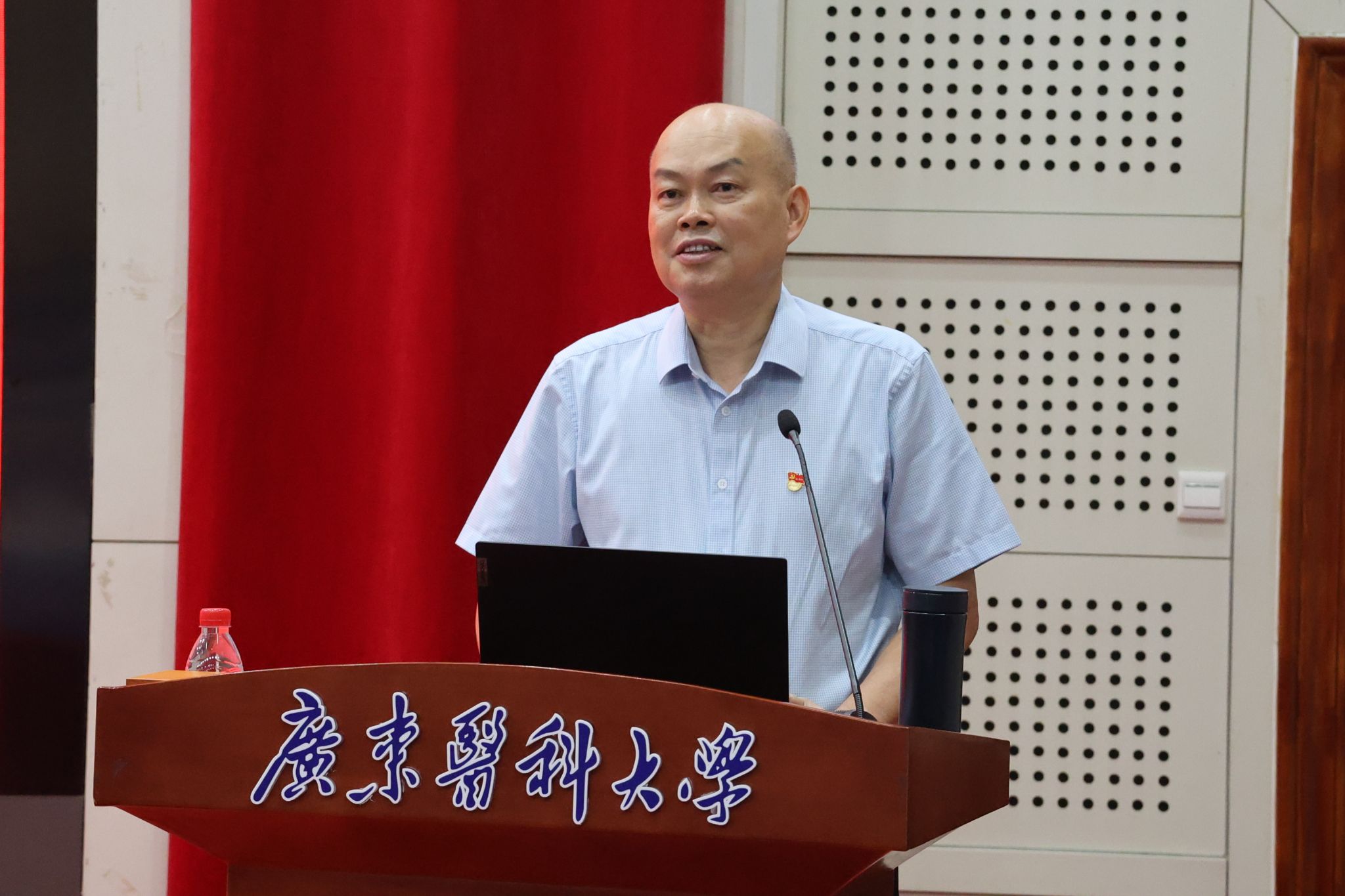 专题党课开始之前,举行了第六十四期党员发展对象培训班开班仪式。党委常委、组织统战部部长赖焱烽作开班动员。学员代表、第一临床医学院2022级麻醉学专业周柳含同学作表态发言。