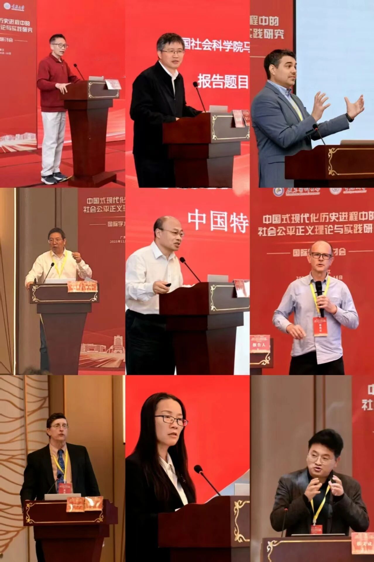 来自高校和研究机构的十一位专家学者先后进行了主旨报告发言。中国文化软实力研究中心主任、湖南大学马克思主义学院张国祚教授着重分析了“中国式现代化”与“公平正义”的关系问题;中国辩证唯物主义研究会公平正义专业委员会会长、重庆大学马克思主义学院院长冯颜利教授以如何实现公平正义为切入点,明确指出实现公平正义必须坚持量力与尽力的辩证统一;美国中美后现代发展研究院副院长克里福德·柯布(Clifford William Cobb)研究员主要从何为有机正义、有机正义的特征、有机正义的主体与问题这三个方面展开论述,指出有机正义是构建生态文明的重要推动力量;中国社会科学院马克思主义研究院纪委书记、副院长陈志刚研究员认为,新时代促进社会公平正义被摆在一个前所未有的重要位置,这既是制度优越性、党的宗旨的集中体现,也是我国深厚文化底蕴的生动体现。复旦大学哲学学院王凤才教授系统阐述了从“四个现代化”到“中国式现代化”的演进历程,强调生态文明是中国式现代化的题中应有之义;中山大学文化强国研究院执行院长、马克思主义学院林进平教授认为,中国特色社会主义公平正义蕴含着三个相互关联的限定,即“社会主义”的,注重“公平”的,有“中国特色”的;上海交通大学马克思主义学院杜玉华教授从“何为-为何-如何”的逻辑思路出发,对橄榄型分配的理论内涵、价值意义及构建路径进行了系统论述;美国过程研究中心执行主任威廉·安德鲁·施瓦茨(William Andrew Schwartz)研究员从公平本体论意义出发,结合过程哲学视角,提出了以关系为核心的整体正义观;中国人民大学哲学院薄国强(Roland Theodore Boer)教授认为,必须用辩证方法理解和阐释西方自由主义的正义观和马克思主义的正义观,马克思主义提供了一个更高、更全面的正义观。武汉大学哲学学院院长李佃来教授认为,无论是从理论维度还是实践维度来讲,中国式现代化都蕴含着对社会公平正义的价值追求。兰州大学马克思主义学院院长蔡文成教授阐述了西方学者对全过程人民民主的认知概况、原因及影响,并提出了应对的策略建议。