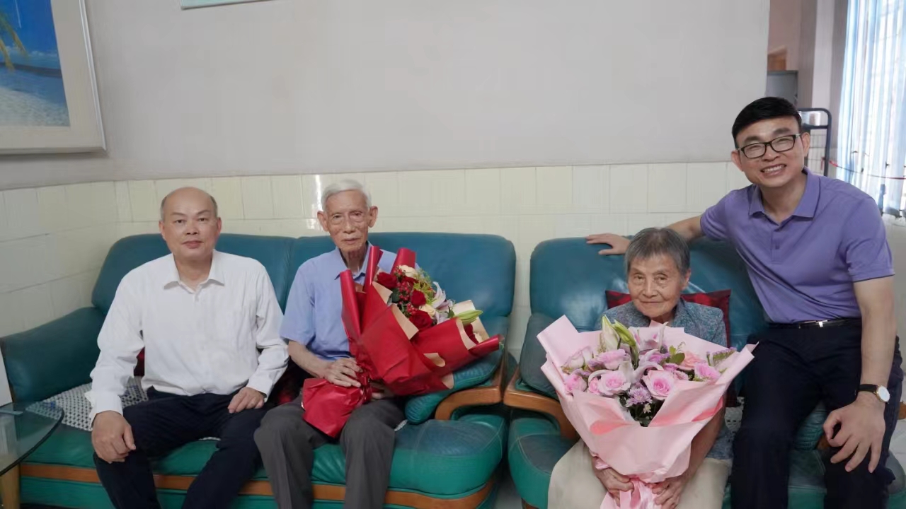 在中国共产党成立103周年之际,6月30日下午,学校党委书记、校长卢景辉和党委副书记黄达海带队慰问老党员、患病党员、老干部代表,为党龄50年的老党员颁发“光荣在党50年”纪念章,送上鲜花和慰问金,聆听老党员们讲述年轻时艰苦奋斗、自强不息参与投身学校建设等奋斗故事,送去党的温暖和关怀,并代表学校党委向全校党员致以崇高敬意和亲切问候。