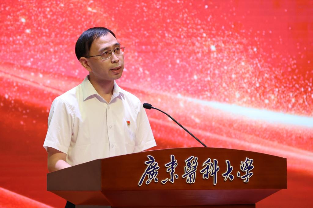 会上,为学校第三批“双带头人”教师党支部书记工作室进行了授牌。第二临床医学院常务副院长赖天文教授、生物医学工程学院贾一平同学作为师生党员代表发言。赖天文表示,将始终做到对党忠诚,将“小我”融入“大我”;始终坚守入党初心,勇担时代使命;始终从严加强自律,严守法纪底线。贾一平表示,自己最幸运的是:前行有方向,思想绽光芒。最振奋的是:生而逢盛世,筑梦正当时。最庆幸的是:祖国召唤时,我们正青春。勉励自己,将满怀赤子之心,以一腔爱国热血,一番少年志气,在新时代新征程上展现新气象,展出新作为。