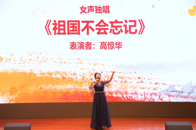 我把青春融进祖国的江河。高惊华老师一曲深情的《祖国不会忘记》,表达对老同志几十年来为学校事业发展默默奉献的感激之情,再次让与会人员深受感动。