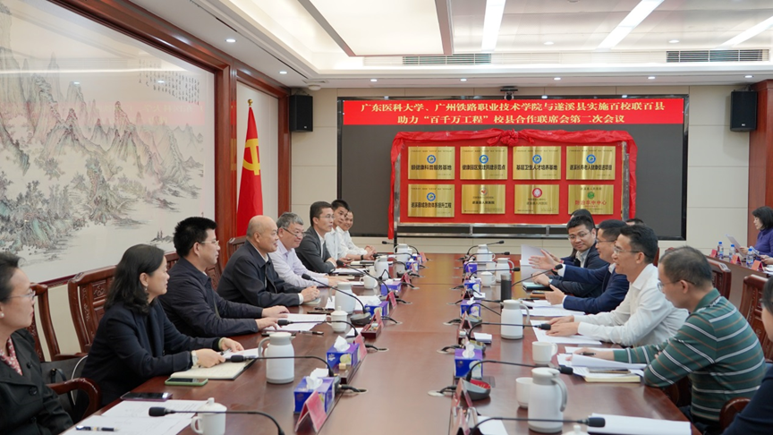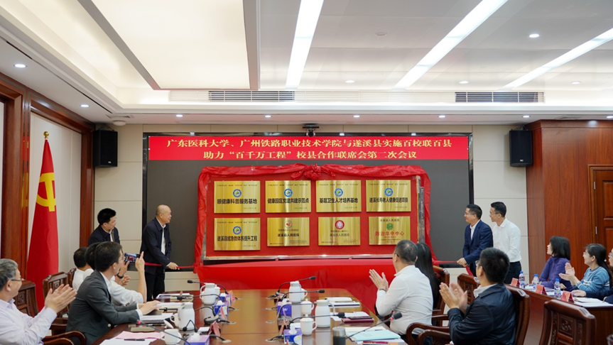 骆华庆提出,政治站位要提高,深化认识谋共建。全力以赴把县校合作共建落到具体项目上、落到驻镇驻村服务上、落到解决难点堵点问题上,切实把高校优质资源转化为遂溪县镇村发展的新动能新势能。重点优势要突出,精准施策同发力。希望两所高校结合自身专业优势强、师资力量足、服务领域广等特点,与遂溪县深入开展全方位合作。围绕“双百行动”各项任务,聚焦遂溪县的区位条件、资源结构、产业基础、发展方向等情况,精准施策、合力共建,助力遂溪高质高效落实“百千万工程”。特别是当前要在提高医疗水平、推动医学共同体建设、人才培养等多个领域要进一步细化合作内容,分步骤精准落实,共同发力推动“双百行动”取得扎实成效。保障措施要到位,推动落实促共赢。明确工作方案,明确工作责任,明确时间要求。