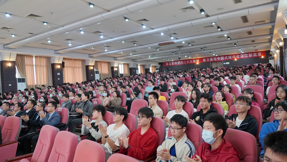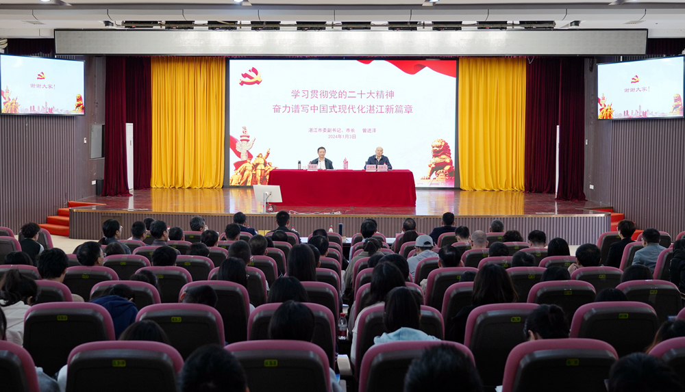 学校党委书记、校长卢景辉主持,他代表学校向湛江市委、市政府一直以来给予学校发展建设的大力支持和悉心指导表示诚挚的谢意。他表示,希望同学们牢记曾市长的嘱托,志存高远、崇德向善、勤学苦练、不懈奋斗,用智慧和汗水拼出美好未来,为湛江跨越式高质量发展贡献力量,让青春在推进中国式现代化的火热实践中绽放绚丽之花。他强调,全校上下要认真学习领会曾市长授课的精神要求,深入学习贯彻党的二十大精神,牢记“为党育人、为国育才”的初心使命,努力培养担当民族复兴大任的时代新人,为教育强国、科技强国、人才强国、健康中国建设作出新的更大的贡献。