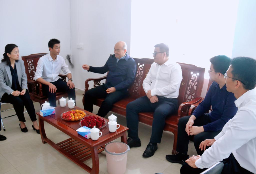 卢景辉一行先来到遂溪县人民政府,与遂溪县长刘剑、县委副书记沈东宇座谈交流,并一同慰问我校“双百行动”驻县干部陈炳权。座谈中,双方围绕下一步推动“双百行动”目标任务落地落实有关事宜进行了交流。卢景辉鼓励驻县干部要珍惜机遇,大干快干,展现作为,打造出校地共建样板,要走在全省高校前列。