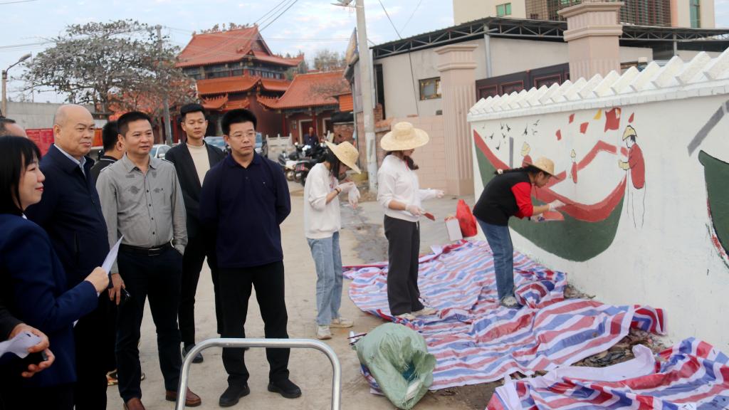 为助力绿美广东生态建设,促进农村环境风貌提升、增强乡村文化内涵,在镇政府的邀请和工作队协调沟通下,15名我校学生在寒假第一天来到乡村参与墙绘设计和施工。卢景辉深入水尾村,看望慰问正在开展寒假墙绘实践活动的学生们,赞扬了学生们的绘画技艺和吃苦耐劳的优秀品质,勉励他们努力为绿美广东、绿美乡村做贡献,并为学生们送上慰问品。