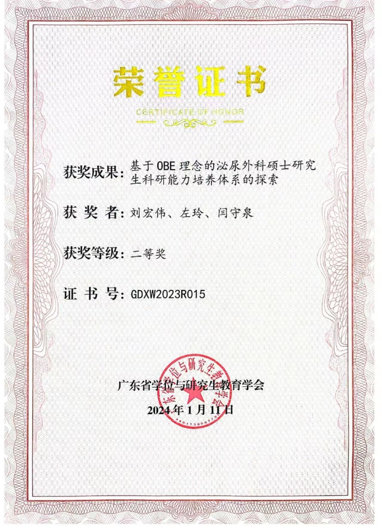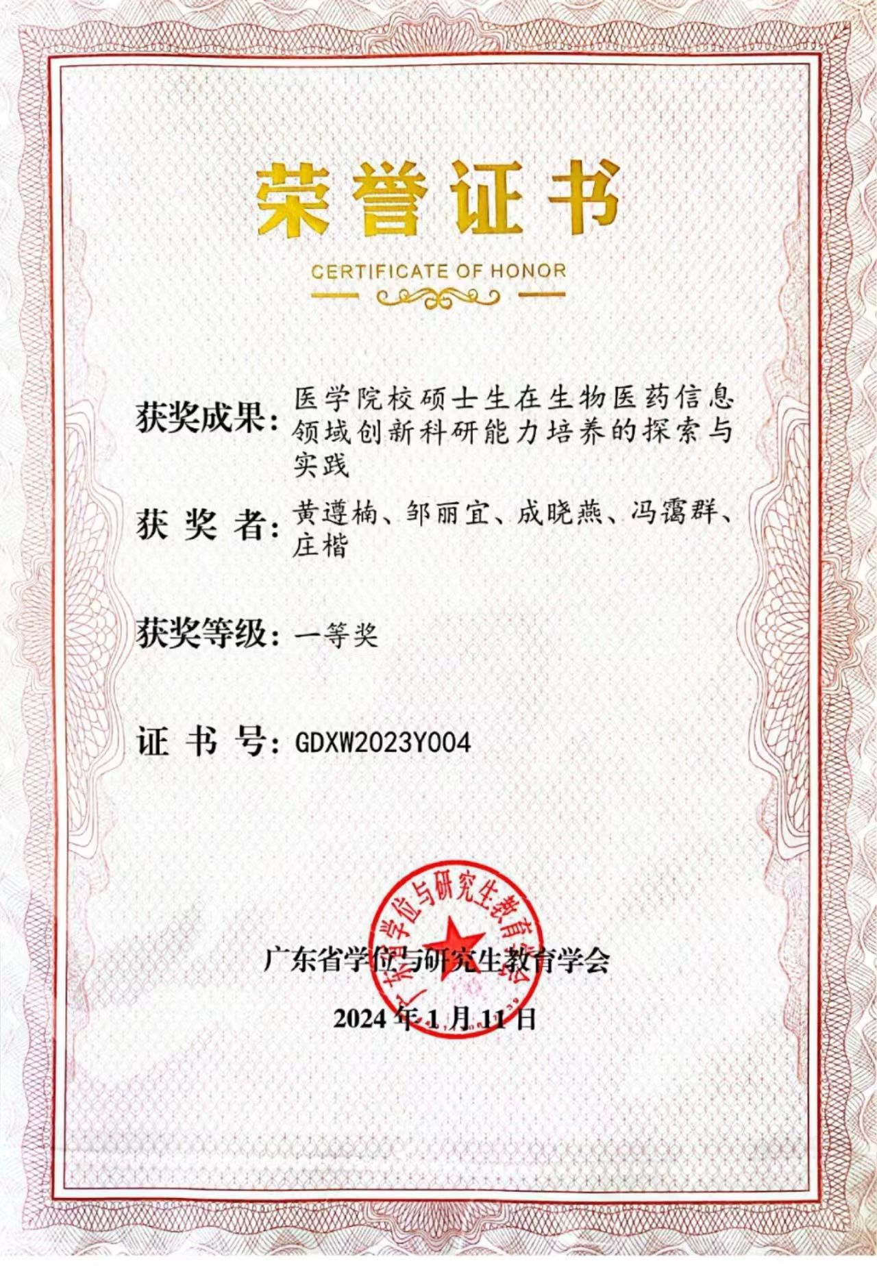 其中,研究生院副院长黄遵楠教授主持的《医学院校硕士研究生在生物医药信息领域创新科研能力培养的探索与实践》和第一临床医学院副院长王双苗研究员主持的《医学传播学理论与实践》荣获一等奖,BETVLCTOR伟德在线附属医院刘宏伟副教授主持的《基于OBE理念的泌尿外科硕士研究生科研能力培养体系的探索》荣获二等奖。