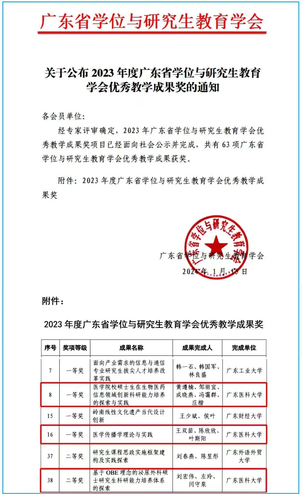 近日,广东省学位与研究生教育学会公布,2023年度优秀教学成果奖,我校获得一等奖2项、二等奖1项。
