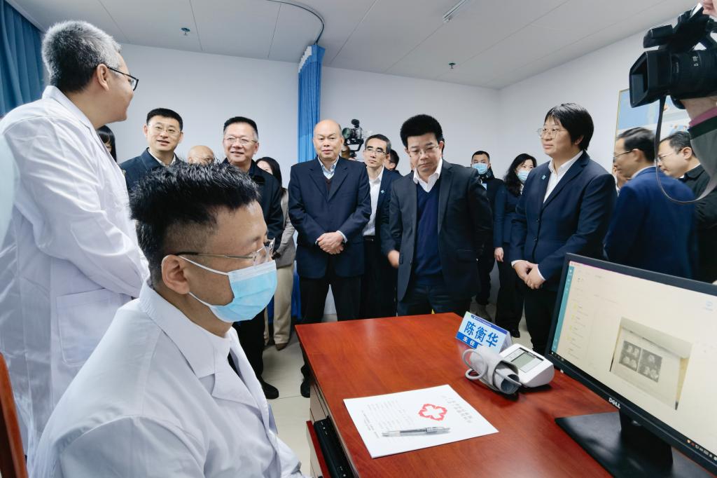 领导一行参观雷州医院超声科专家坐诊、内科远程联合门诊、心血管内科远程查房等情况