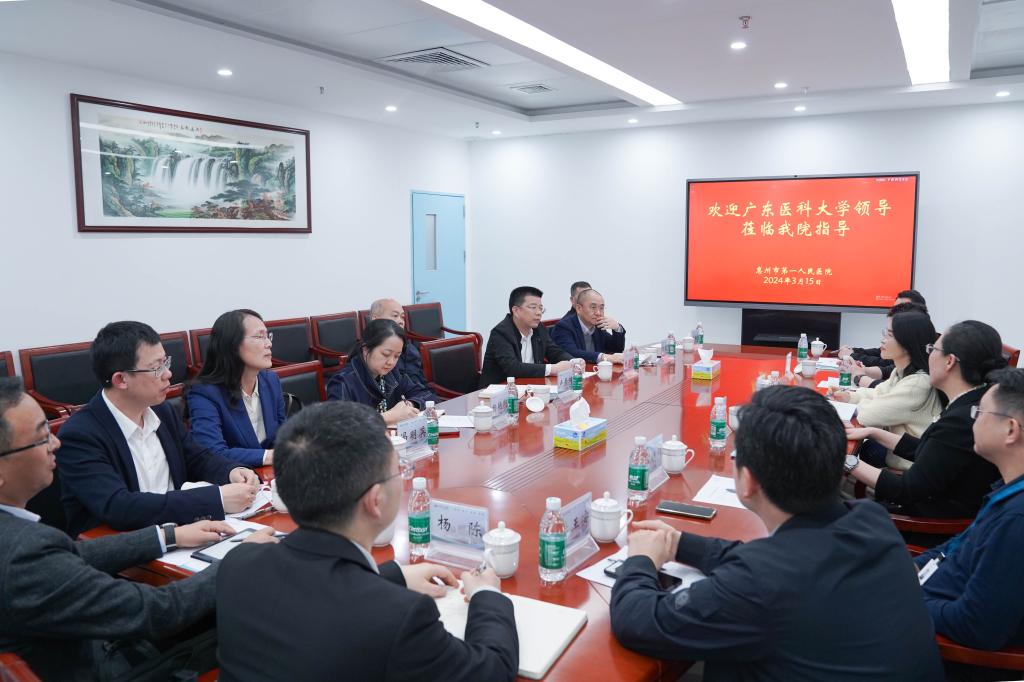 卢景辉向走访单位介绍了近年来学校人才培养、学科建设、科学研究、社会服务和附属医院发展建设等情况。卢景辉表示,广东医的发展建设始终离不开省委、省政府的关怀厚爱,离不开全校师生医护员工的辛苦付出,离不开各地党委、政府、广大校友和社会各界的关心支持,学校将坚定以社会服务为己任,培养更多热爱人民的高素质医学人才,为区域卫生健康事业高质量发展贡献更大力量。